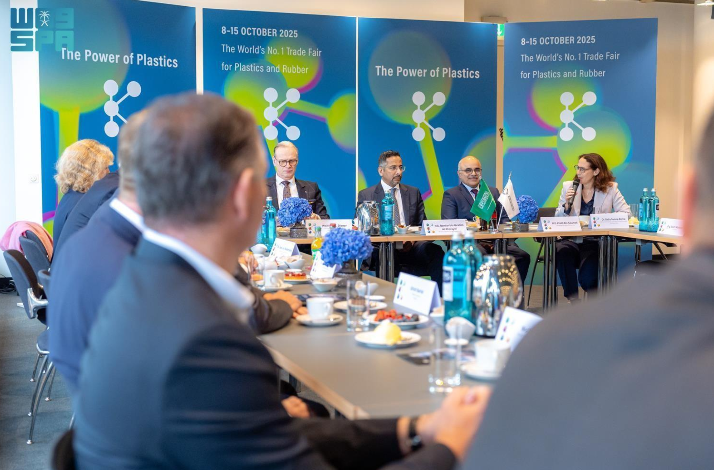 Minister of Industry and Mineral Resources Bandar Alkhorayef led a business roundtable meeting with leading global industrial companies in Düsseldorf, Germany, highlighting strategic investment opportunities in Saudi Arabia's downstream chemicals and advanced manufacturing sectors. The meeting was held on the sidelines of the "K Show 2025," the world's leading trade fair for the plastics and rubber industry.