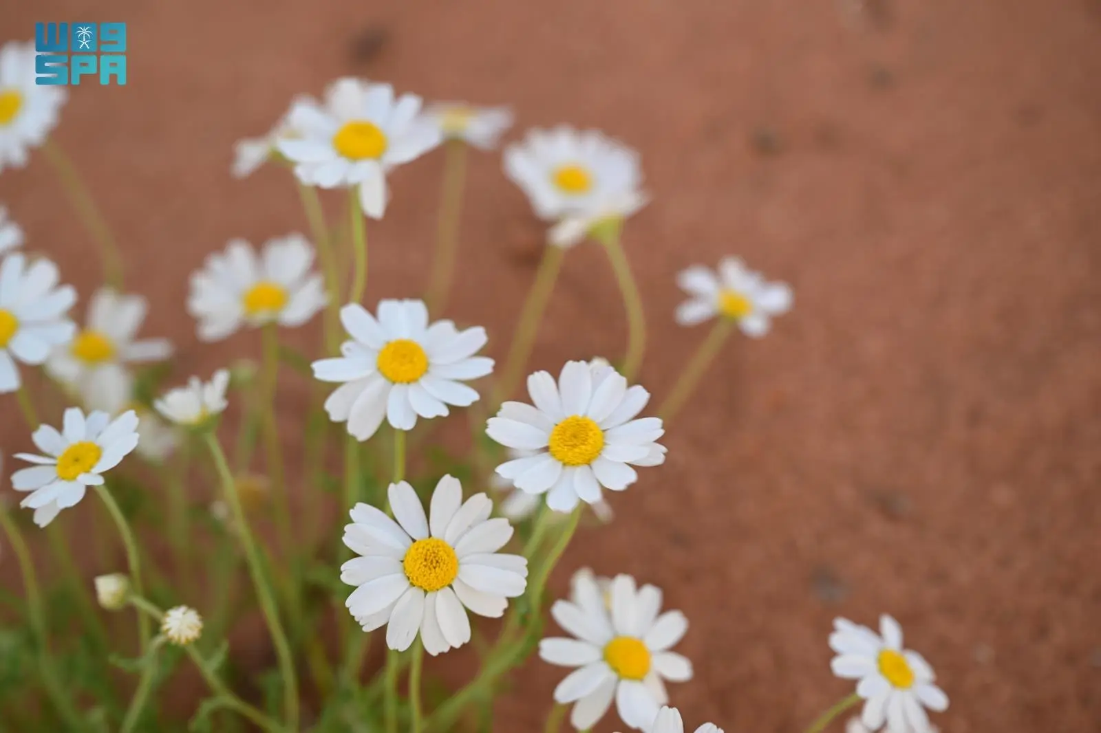 Daisy flowers (Anthemis) are currently spreading across the plains, sandy areas, and dunes of AlUla Governorate, creating striking natural landscapes that reflect the diversity of the desert environment.