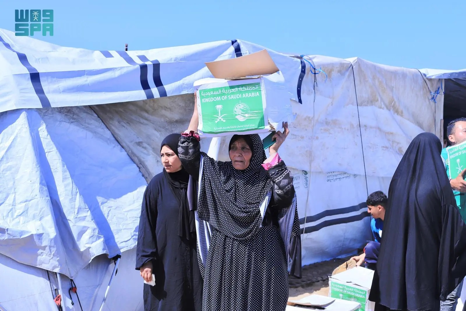 King Salman Humanitarian Aid and Relief Center (KSrelief) distributed food baskets across southern Khan Yunis as part of the Saudi campaign to provide relief to the Palestinian people in the Gaza Strip.