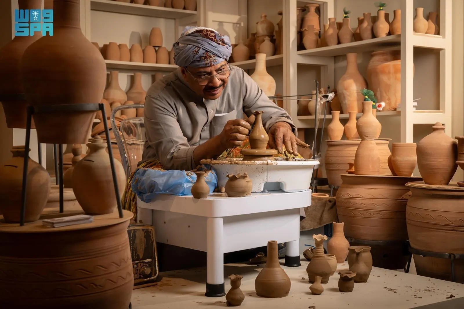 Amid the halls of Saudi International Handicrafts Week (Banan), where crafts from 40 countries intersect, a small pavilion draws visitors with the soft strains of familiar Yanbu melodies drifting through the space. Behind the workshop table sits Youssuf Abu Laban, his calm smile reflecting a lifetime of patience and devotion. His hands move with practiced ease, knowing the clay as instinctively as a heartbeat.