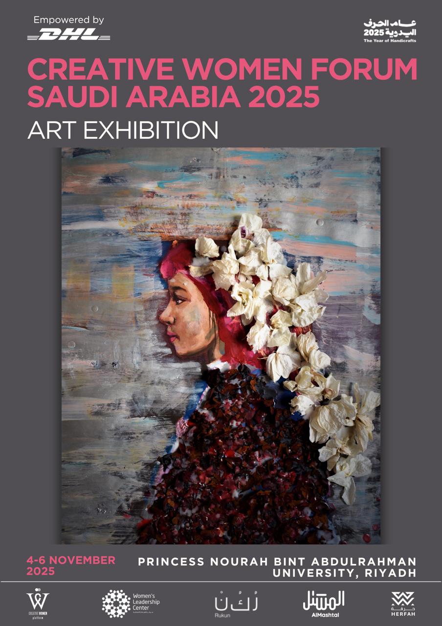 An inspiring exhibition featuring award-winning female artists and craftswomen will premiere during the second edition of the Creative Women Forum Saudi Arabia 2025, held under the patronage of HRH Princess Noura Bint Saud Bin Naif Bin Abdulaziz Al Saud, at Princess Nourah Bint Abdulrahman University and the National Museum of Saudi Arabia.