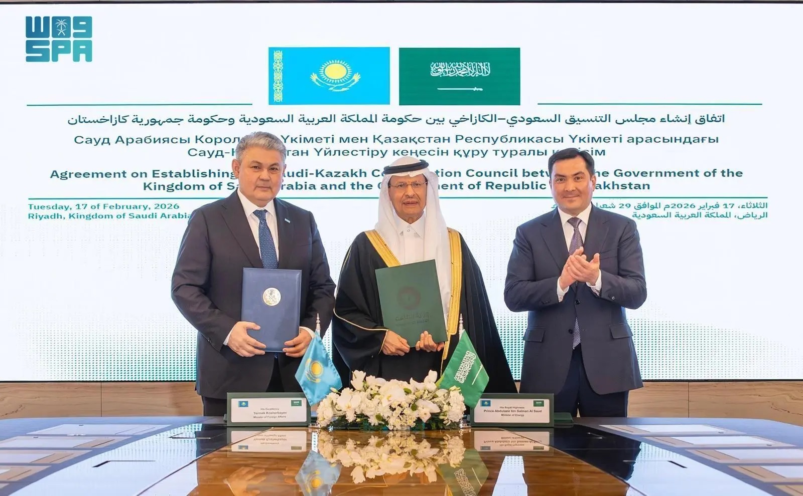 Saudi Energy and Foreign Ministers, Kazakhstan Counterparts Witness Signing of Coordination Council Agreement