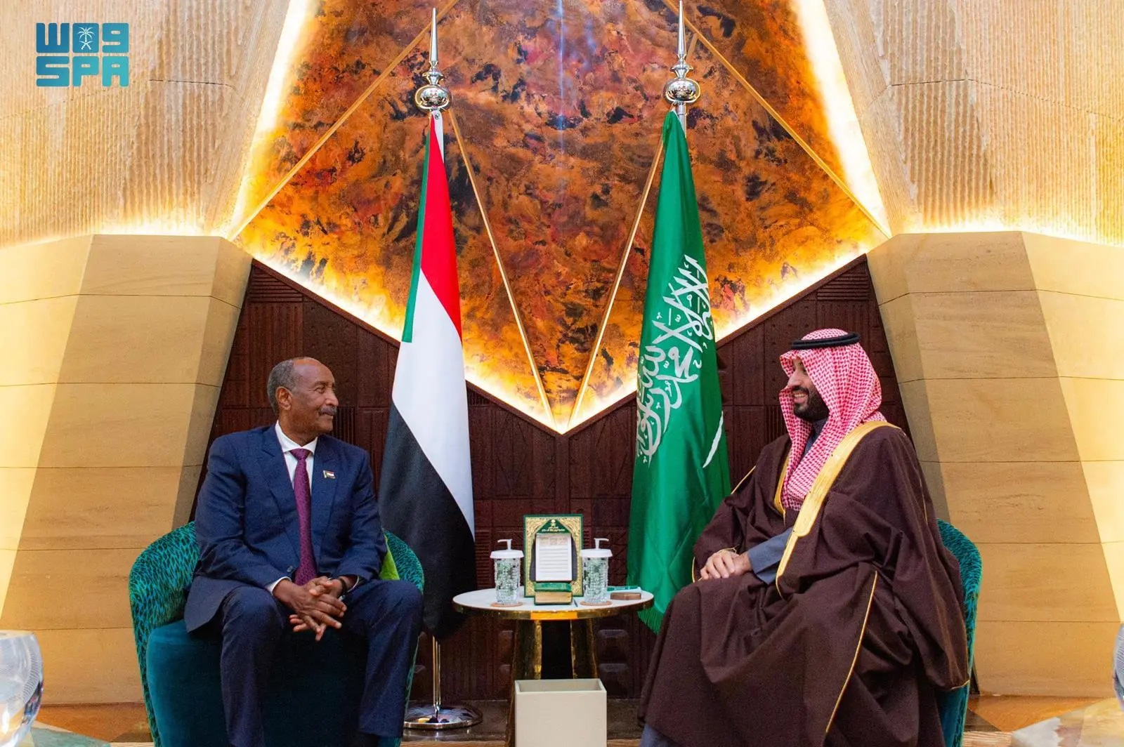 His Royal Highness Prince Mohammed bin Salman bin Abdulaziz Al Saud, Crown Prince and Prime Minister, met today at his office in Al-Yamamah Palace in Riyadh with President of the Transitional Sovereignty Council of the Republic of the Sudan Abdel Fattah Al-Burhan and his accompanying delegation.