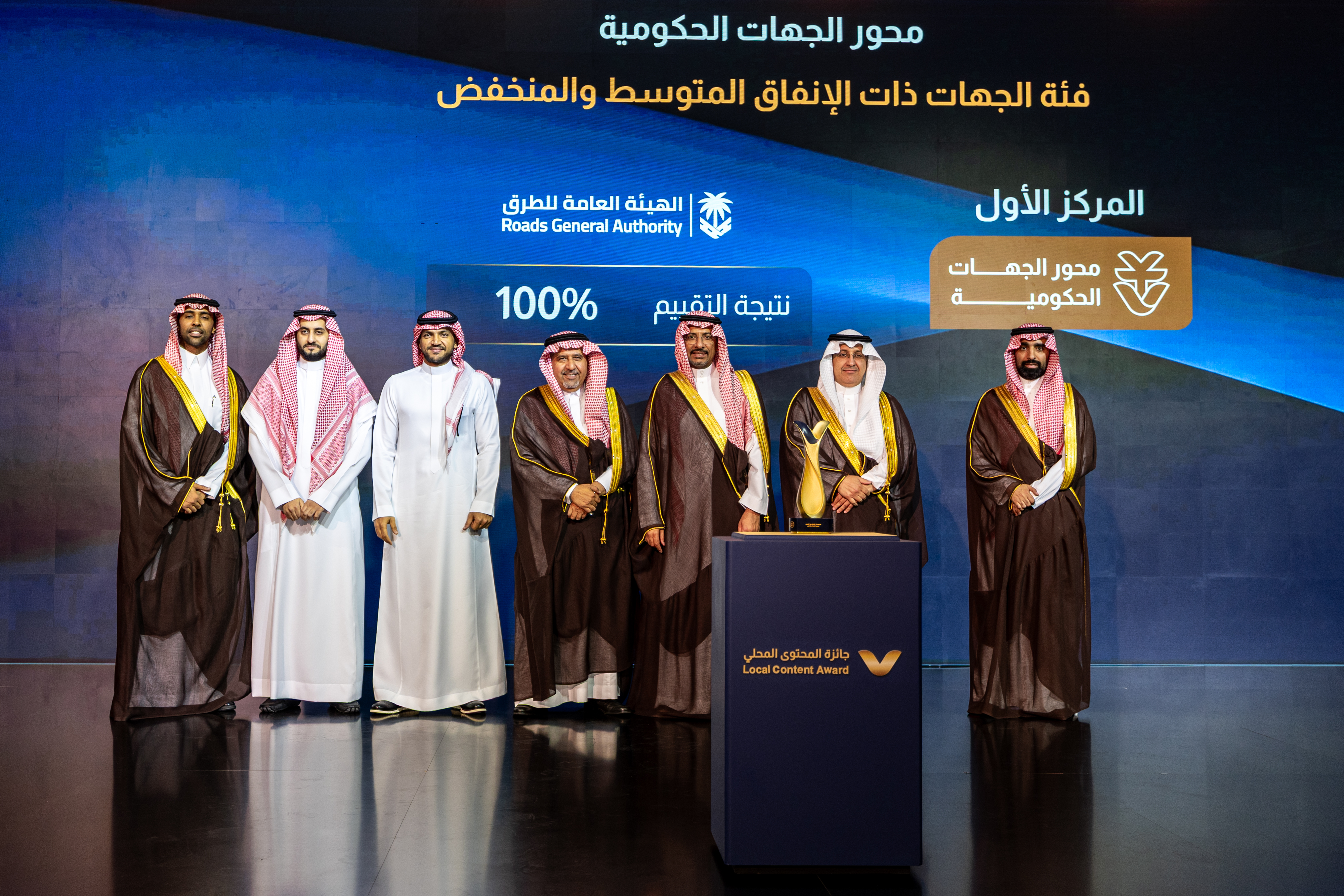In the Excellence in Local Content for Medium and Low-Spending Entities track, Roads General Authority secured first place, followed by Ministry of Energy in second place, while Saudi Ports Authority (Mawani) ranked third.