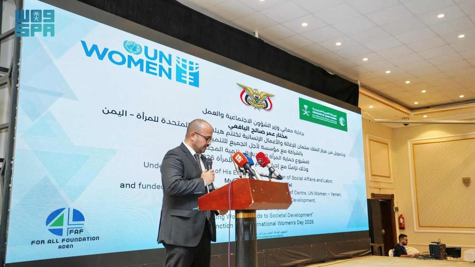 The King Salman Humanitarian Aid and Relief Center (KSrelief), in partnership with UN Women, concluded the "Protecting Women Leads to Societal Development" project in Aden, focusing on strengthening institutional capacity and providing direct support services to vulnerable women and girls in Yemen.