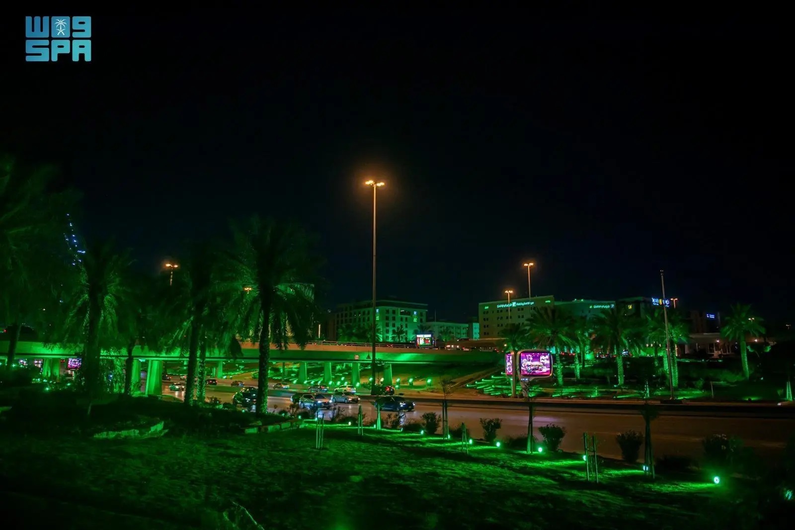 Riyadh Municipality illuminated the capital’s roads, squares, and buildings in celebration of Saudi Green Initiative Day, observed annually on March 27, underscoring the city’s commitment to sustainability and its role in enhancing the quality of life through the development of vegetation cover and ecological balance.