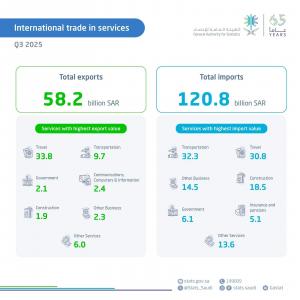 GASTAT Reports Service Exports at SAR58.2 Billion in Q3 2025